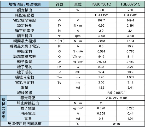 >>东元伺服马达 TCB07、08系列